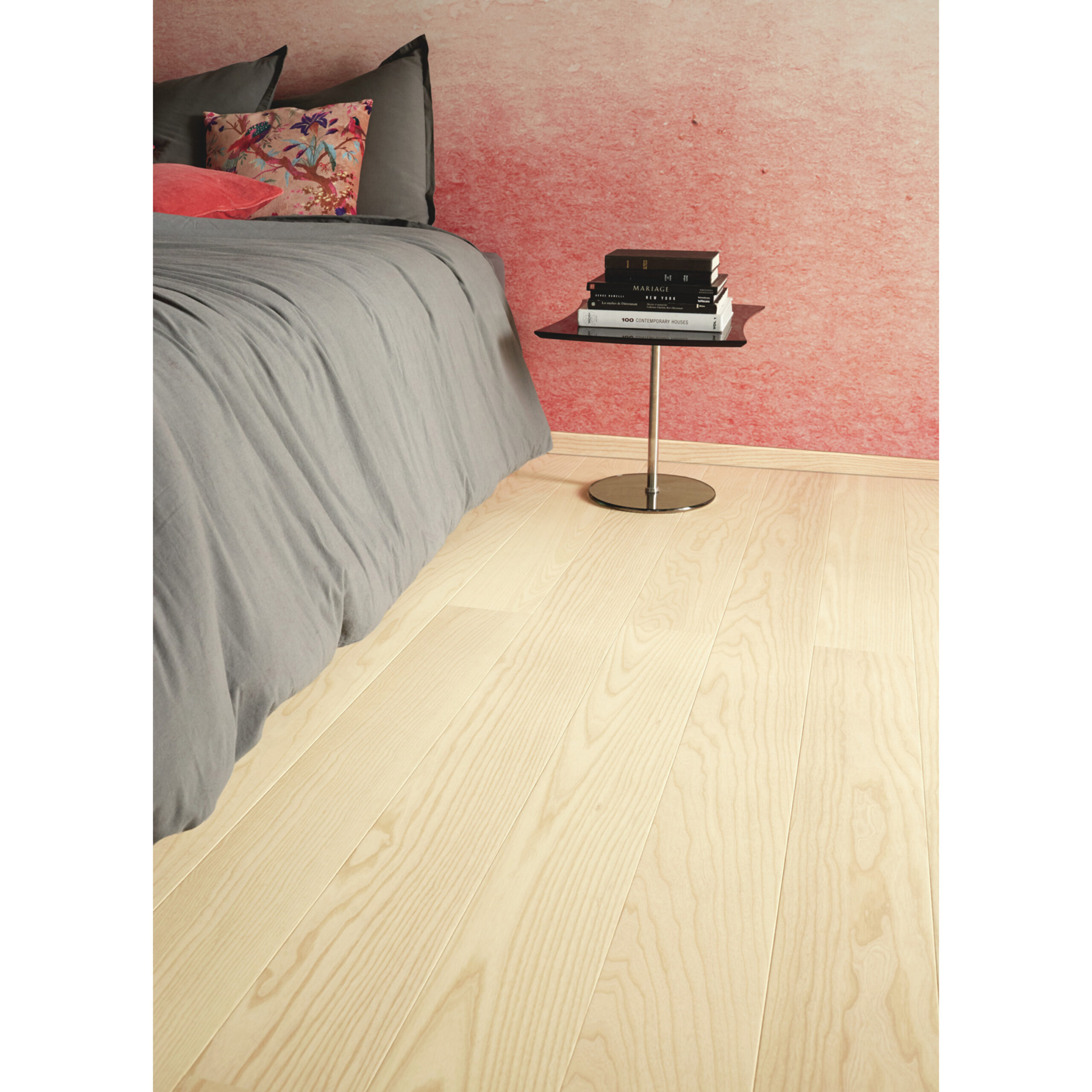 Vaaleaksi kuultovärjätty kaunis 1-sauvainen saarniparketti. Luonnollisen vaalea parketti antaa rauhallista tilan tuntua ja luo kodikkaan tunnelman. Pintaa suojaa kestävä Proteco Natura -mattalakka.